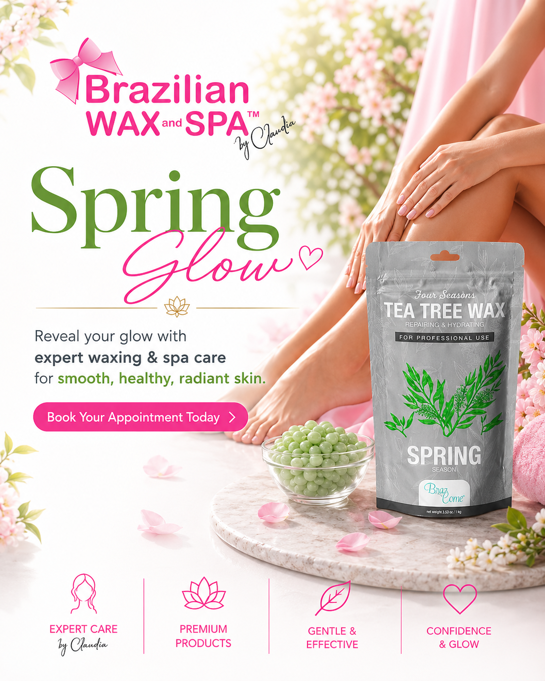 BrazcareWaxing and Spa Supplies offers specific waxes for each season of the year: Fall, Winter, Summer, and Spring – each one of them prioritizing the skin's needs in different
